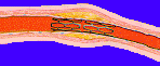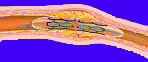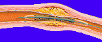 In some instances, the cardiologist will place a delicate metal device inside the artery to help it remain patent (open) after he completes the angioplasty (balloon) procedure. The stent is a metal coil or mesh structure that is permanently placed in the affected coronary artery. It provides a rigid structure to give the blood vessel shape and keep it open so blood may flow to the cardiac muscle tissue it serves. Because the stent is larger than balloon catheters, the artery must be dilated with a balloon before placement. In addition, the size of the stent limits its use to only larger coronary arteries.